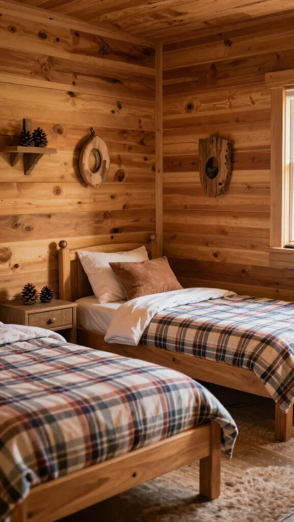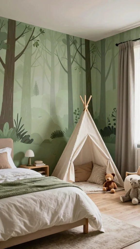 – Paint walls soft green or brown for a woodsy feel.