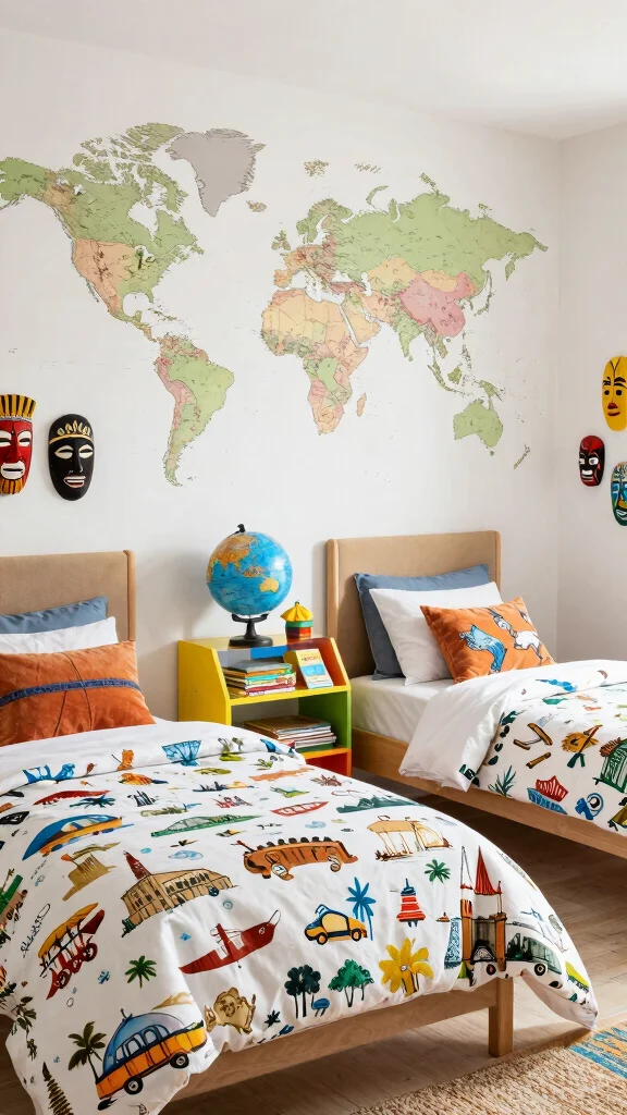 This global adventure theme fills the room with inspiration, encouraging a sense of wonder and discovery.