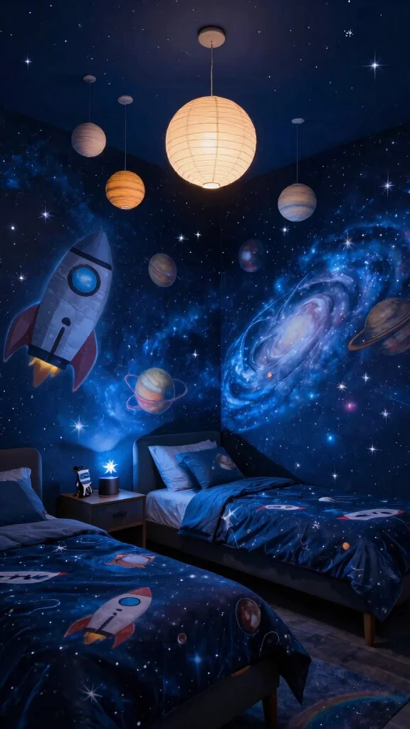 This thrilling theme not only ignites a passion for space but also creates a cozy environment for restful sleep.
