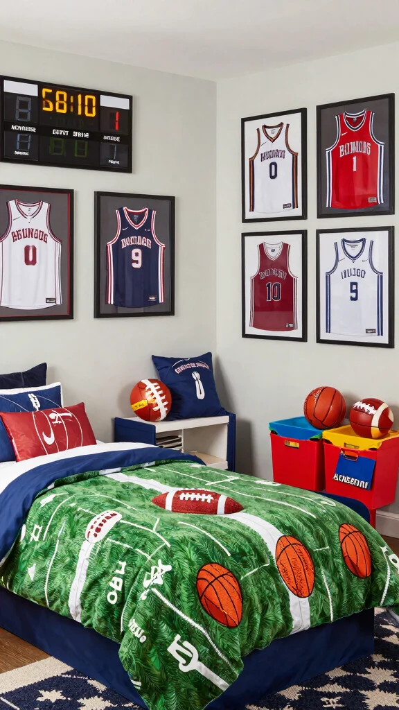 – Use bedding featuring their favorite teams for a personal touch.
