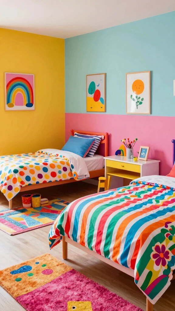 Create zones: a cozy reading corner, a study area, and a shared play zone. Use colorful bedroom designs in different wall accents or textiles to give each child their own vibe while keeping harmony.