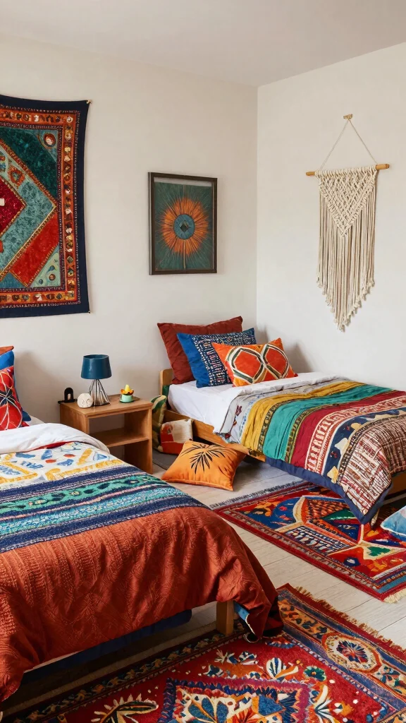 Create an eclectic bohemian-style bedroom that radiates creativity and warmth! This vibrant theme allows for a delightful mix of colors, patterns, and textures, making it perfect for siblings with diverse tastes. Each bed can be adorned with mismatched yet complementary bedding, while the walls can showcase tapestries and wall hangings that tell a story.