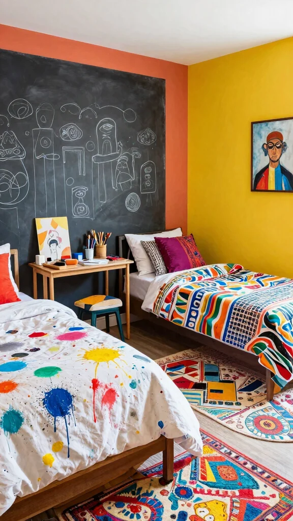 This artsy theme ignites imagination, providing a dynamic space for siblings to collaborate on creative projects.