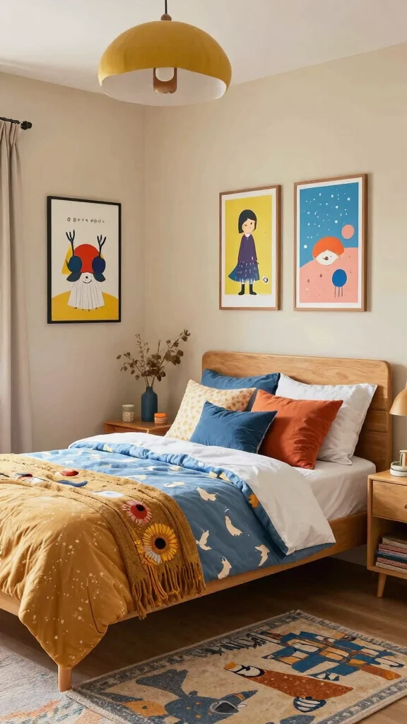For an exciting design, consider incorporating multi-colored rugs to brighten the floor and using mismatched furniture pieces for a whimsical feel. This lively approach aligns with the trend of celebrating individuality, creating a space where creativity can flourish.