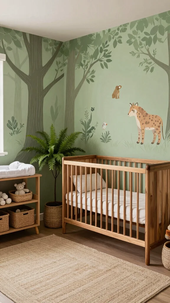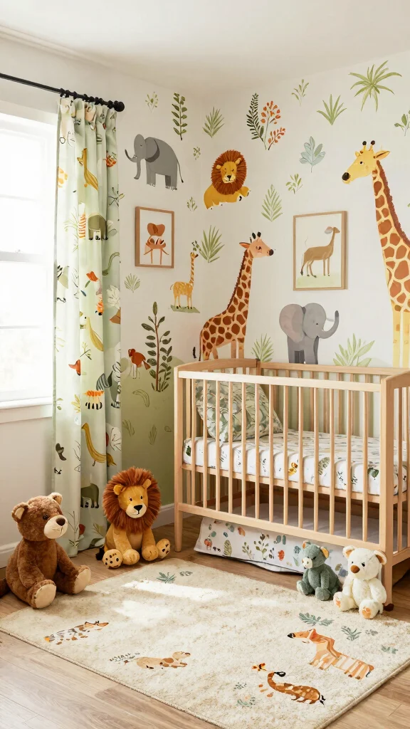 Incorporate plush animal toys and themed bedding to enrich the safari experience. Using natural materials like bamboo for furniture and organic cotton for textiles adds to the eco-conscious aspect of this playful design.
