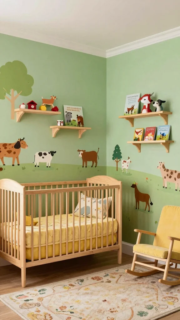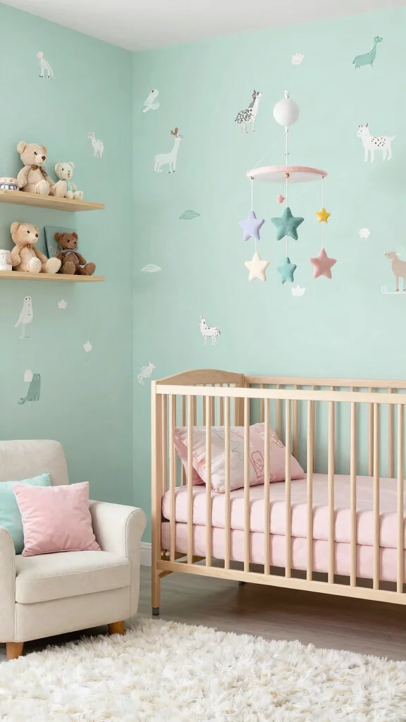 To bring this theme to life, use eco-friendly paints and natural fabrics in curtains and bedding to ensure a safe space. Whimsical touches, such as pastel-colored accessories like stuffed animals and wall art, can add charm while encouraging creativity.
