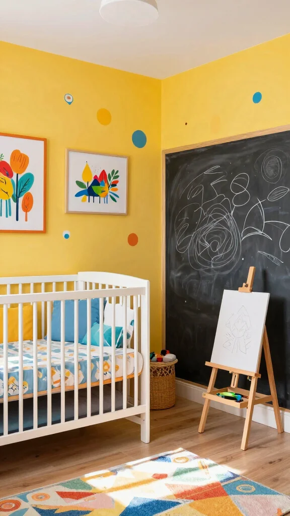 Designate a small corner with art supplies and a chalkboard wall, allowing your child to scribble and express themselves. Display art pieces made by family members to personalize the space and foster a sense of belonging.