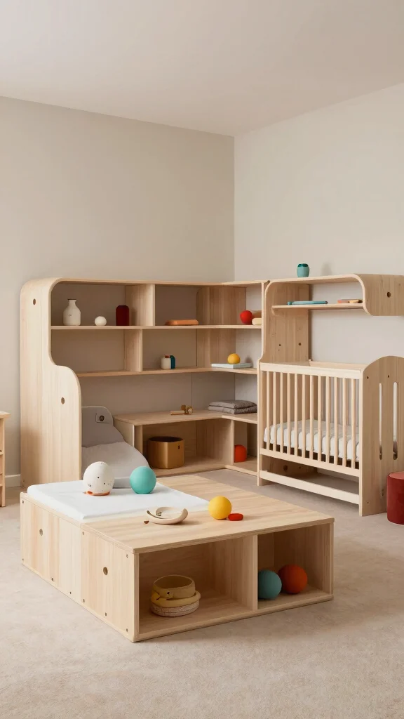 Pick pieces that can grow with your child, like adjustable cribs, convertible dressers, and open storage that can hold toys as they increase.