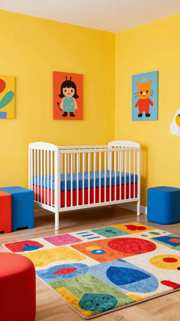 A nursery alive with primary colors can create a joyful and stimulating atmosphere for your baby. Think vibrant reds, yellows, and blues, paired with fun patterns to energize the space. This design not only uplifts but also encourages creativity in your little one.