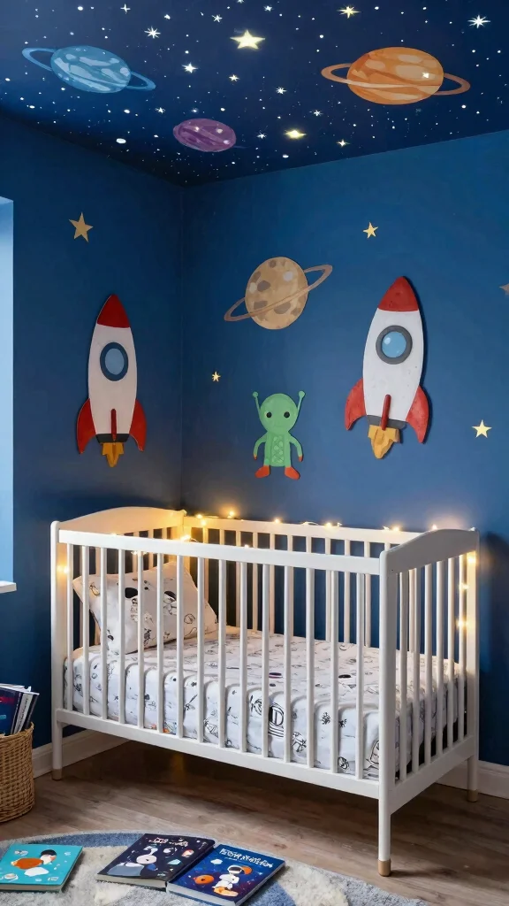 Select gentle fabrics for bedding and curtains to evoke a soft, inviting ambiance. Adding whimsical touches like starry night lights and plush toys can further ignite your child’s imagination, making this theme truly magical.