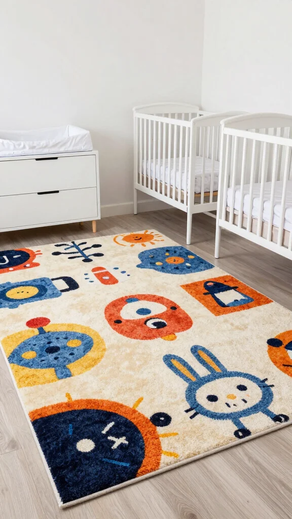 – Patterned rugs can effectively hide stains, making them practical for a nursery.
