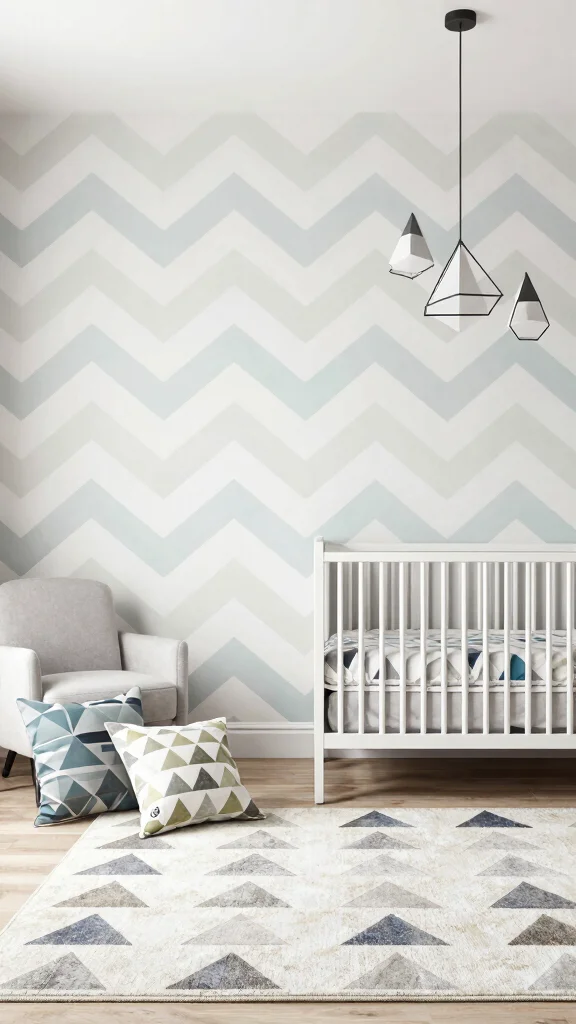 Accent the nursery with furnishings that feature geometric motifs, such as patterned crib sheets or stylish rugs. You might also consider adding decorative pillows and blankets in various geometric prints for a playful touch.