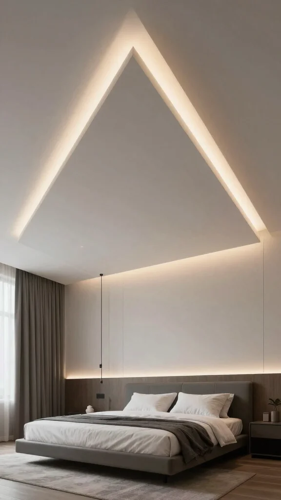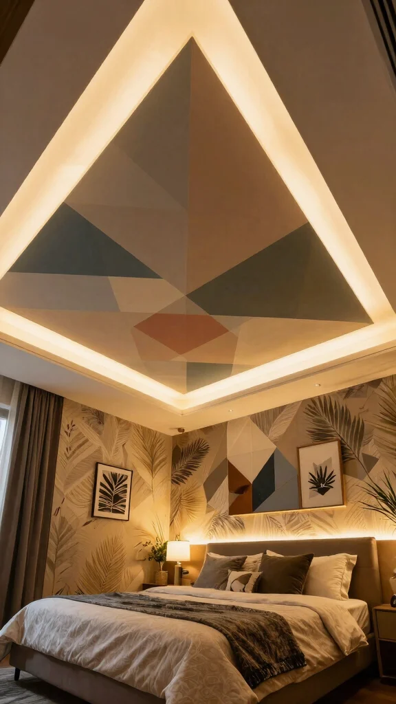 Embracing geometric patterns can transform your master bedroom ceiling into a stunning visual statement. These bold shapes, from delightful triangles to intricate hexagons, create a dynamic interplay of lines and angles that captures attention. By incorporating contrasting colors, you can define the space beautifully, making it feel both expansive and engaging. Adding LED strip lights along the edges can enhance these geometric features, bringing a contemporary touch to your design.
