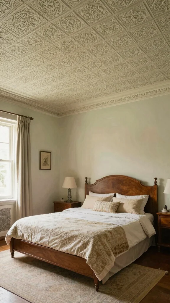 Tin tile ceilings can evoke a sense of history, making your bedroom feel timeless and cozy while adding elegance.