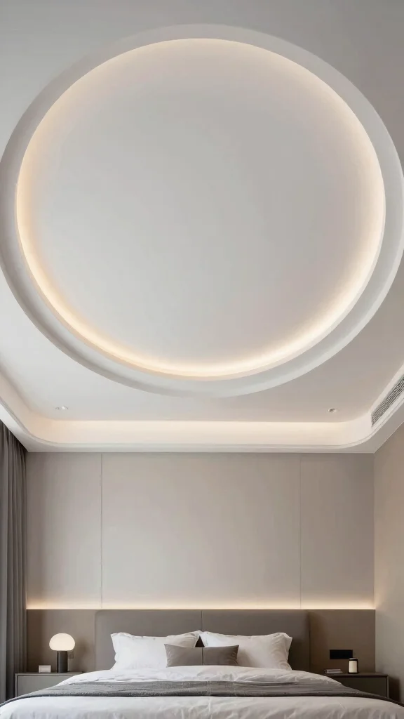 Circular designs in ceilings can introduce a playful yet sophisticated element to your master bedroom. This modern trend features concentric circles or cutouts that create a stunning visual effect, especially when paired with dynamic lighting.