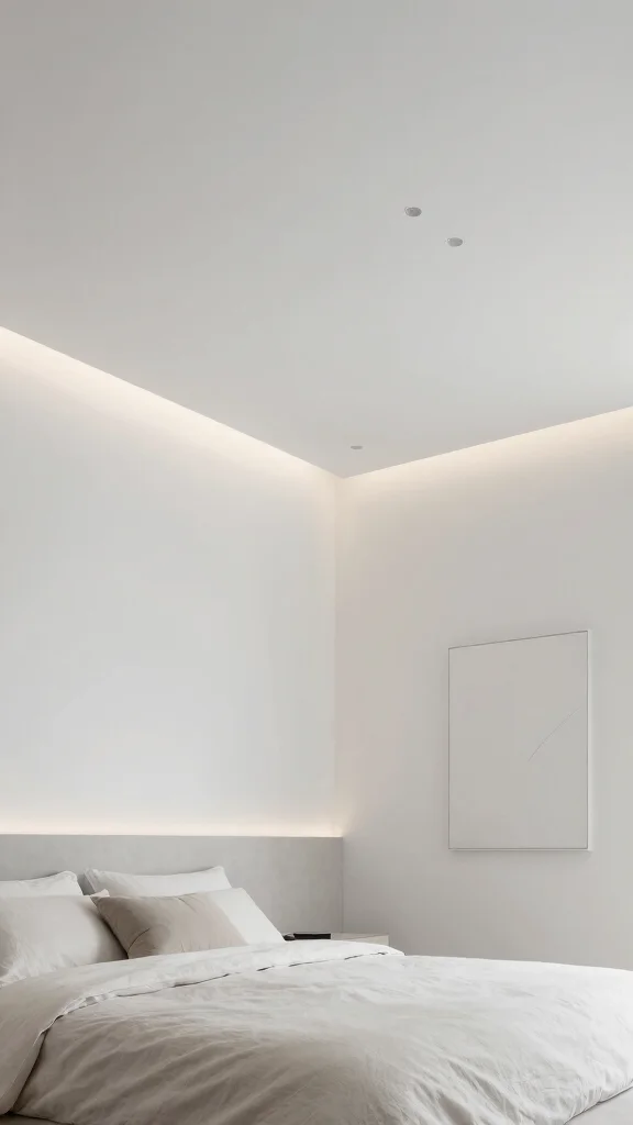 Minimalism shines in ceiling design, where simplicity fosters a serene atmosphere. A flat, unadorned ceiling paired with subtle recessed lighting can create a spacious and airy feel in your master bedroom. This clean look allows other design elements to take center stage, ensuring a balanced and peaceful environment.