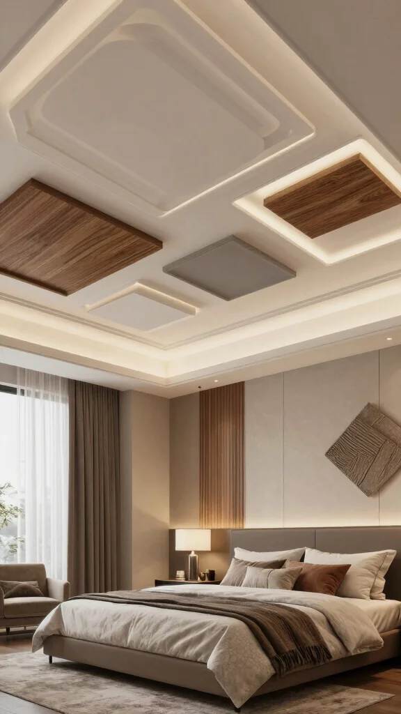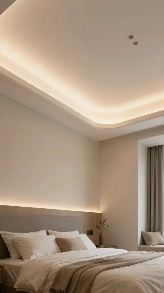 Choose warm neutrals or deep hues that complement bedroom interior decor, and keep lines clean to align with ceiling design trends. This approach works great for master bedroom renovations aiming for a sophisticated, tranquil retreat.
