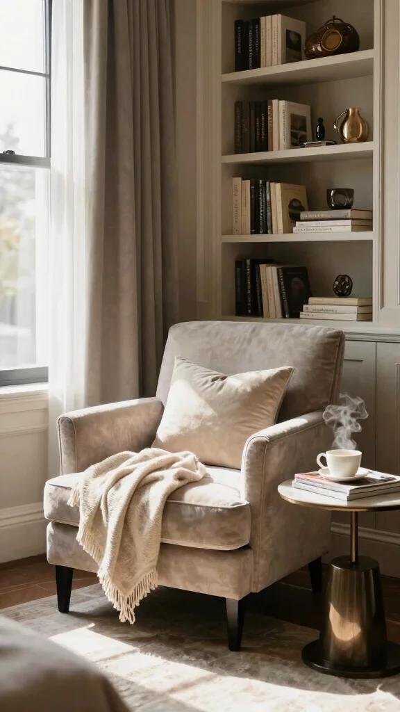 Add a small side table for beverages or reading materials, and layer in a soft throw for added comfort. If you can, opt for a window seat to bask in natural light and enjoy scenic views while diving into your favorite reads. This space can become a delightful retreat anytime you need to unwind.