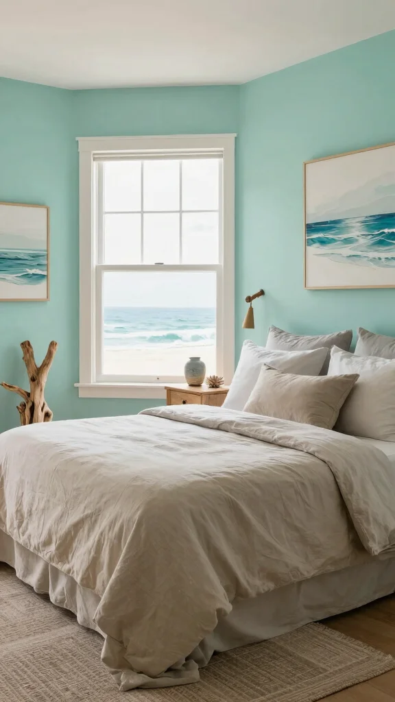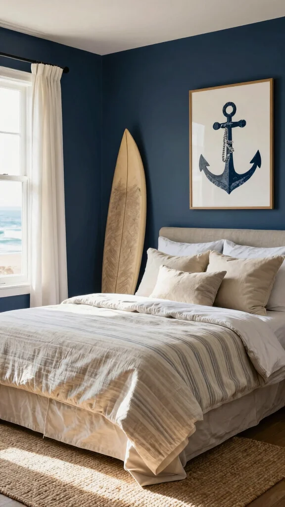 To achieve this look, ensure your room remains light and airy by incorporating plenty of natural light. You can also opt for budget-friendly decor by sourcing second-hand nautical accents or DIY projects that evoke the ocean’s spirit.