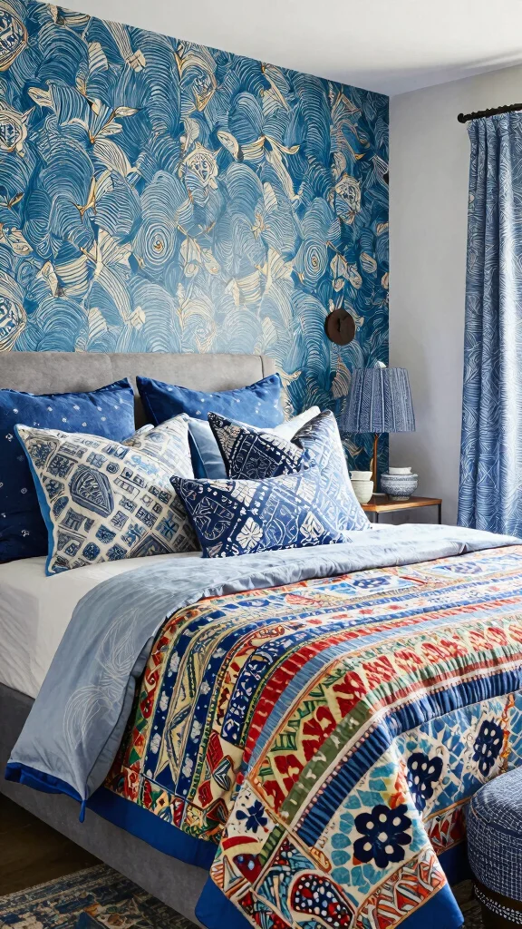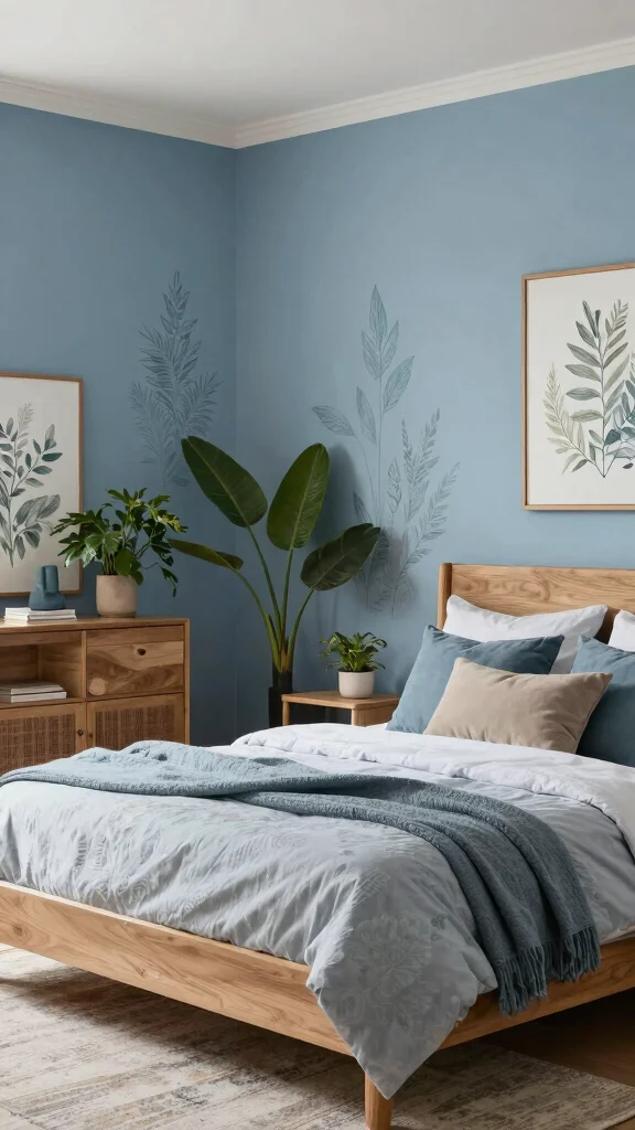 Opt for nature-inspired blue hues combined with greens and sandy tones for a serene, cohesive look.