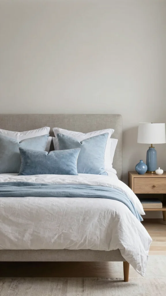To achieve this look, consider using muted blues in small details that elevate the overall aesthetic. Pairing subtle hues with neutral colors maintains a serene atmosphere while still adding interest.