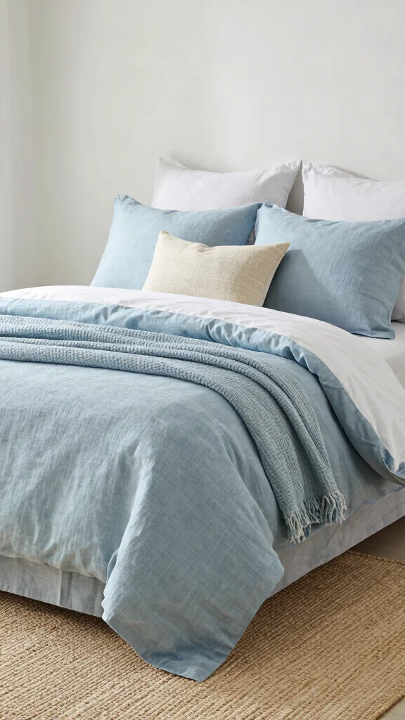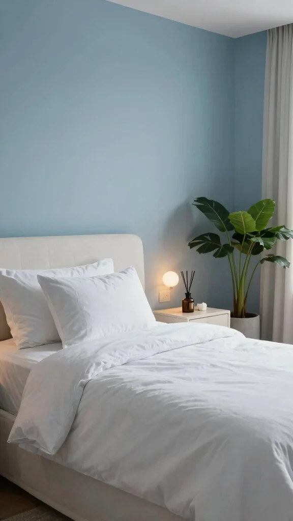 Use soft pastel blues for bedding and walls to foster a calm, inviting environment in your guest space.