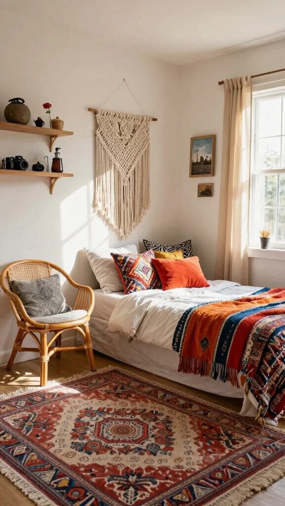 Embrace a vibrant beachy bohemian style for your guest bedroom, where eclectic textures and layers come together to create a cozy, inviting space. This approach allows for self-expression through colorful throw pillows, macramé wall hangings, and unique vintage finds that reflect your personal style. The result is a warm, welcoming atmosphere that feels both relaxed and artistic.