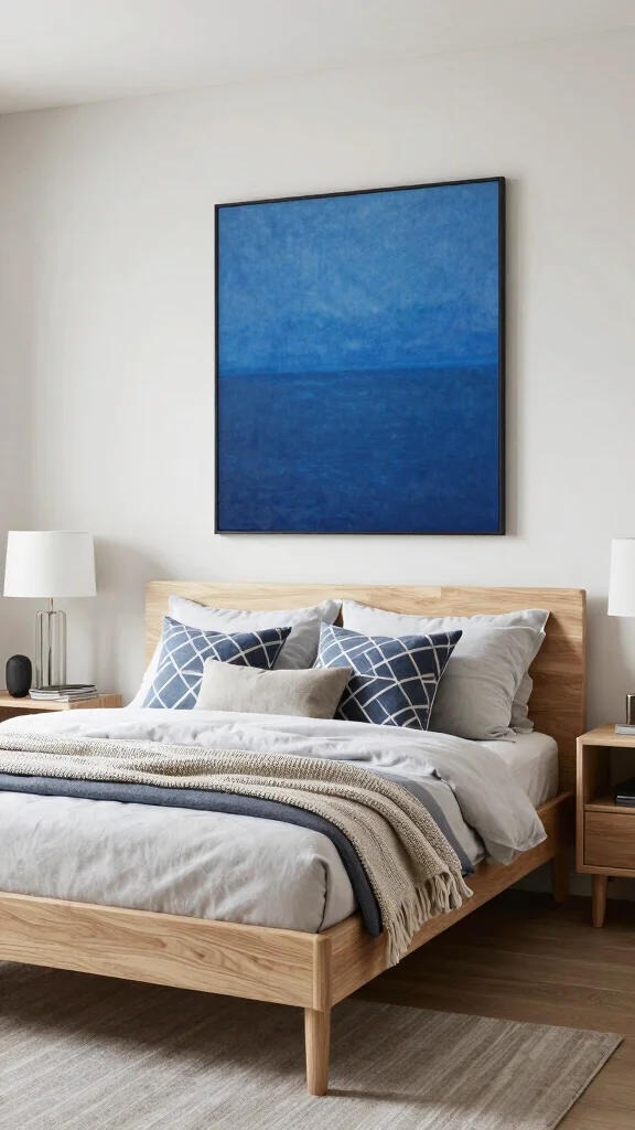 Start with a blue base—walls, bedding, or a large rug—in a muted shade, then layer natural textures like driftwood, wicker, linen curtains, and a jute rug. Introduce blue bedroom decor accents through cushions or a throw, while keeping a clean white or sand backdrop for contrast. Add sea-glass accents and subtle patterns (think nautical stripes) sparingly to preserve a calm, cohesive look that feeds guest room inspiration and bedroom design ideas.