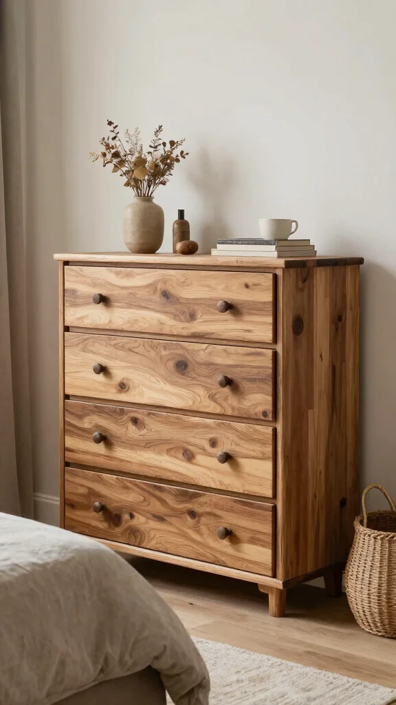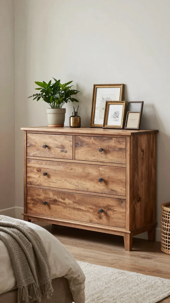 Pair this dresser with natural textiles and decor for a cohesive, eco-conscious aesthetic. Incorporate repurposed materials to give your dresser a unique flair while promoting sustainability.