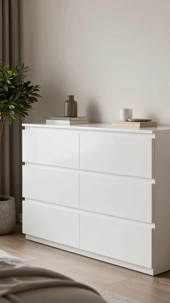 Glossy finishes work well with minimalistic decor, allowing the dresser to serve as a statement piece. Bold color choices can create striking contrasts with muted wall tones, enhancing the overall look.