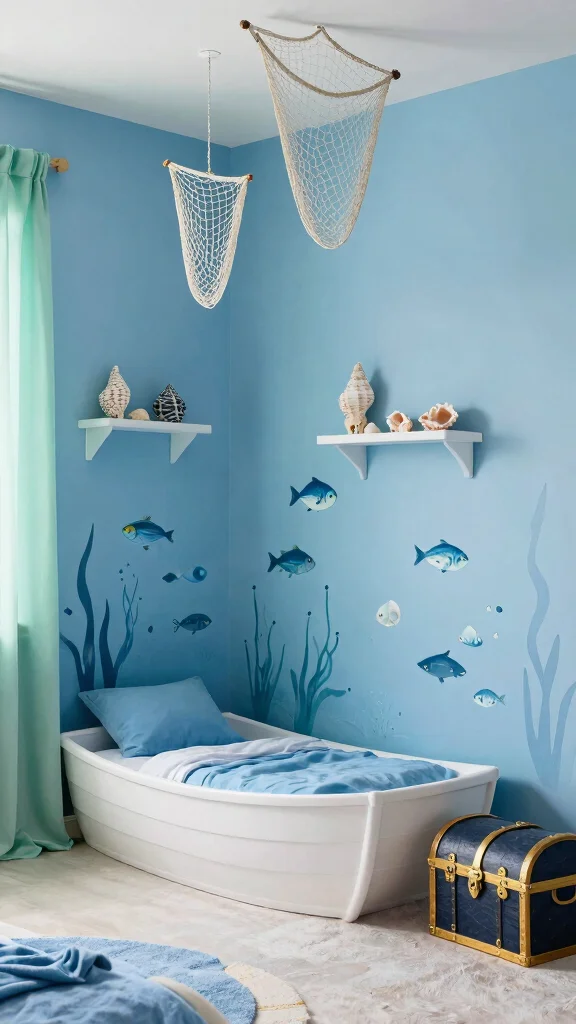 This design fosters a calm yet adventurous atmosphere, perfect for daydreaming about oceanic escapades.