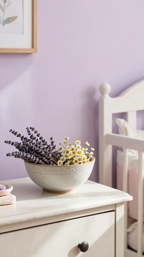 Consider using natural elements like dried flowers or herbs in decorative bowls to fill the room with subtle, pleasant aromas. Opt for gentle scents like lavender or chamomile, known for their calming properties, ensuring they are safe for babies.