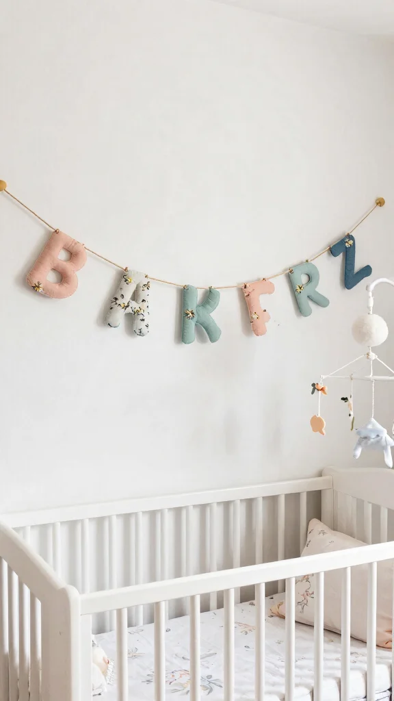 Create a custom piece using soft fabrics or handcrafted wooden letters, adding floral designs or charming accents for a special flair. Hang it above the crib or in the reading nook to inject your baby’s personality into the space.