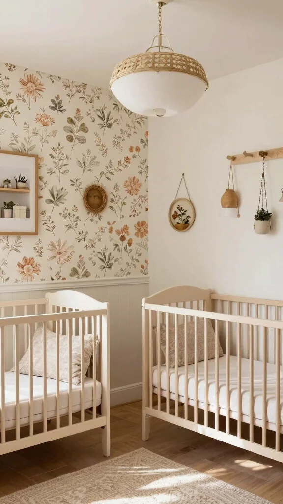 This delightful combination not only beautifies the nursery but also enriches the overall aesthetic with layers of texture and color.