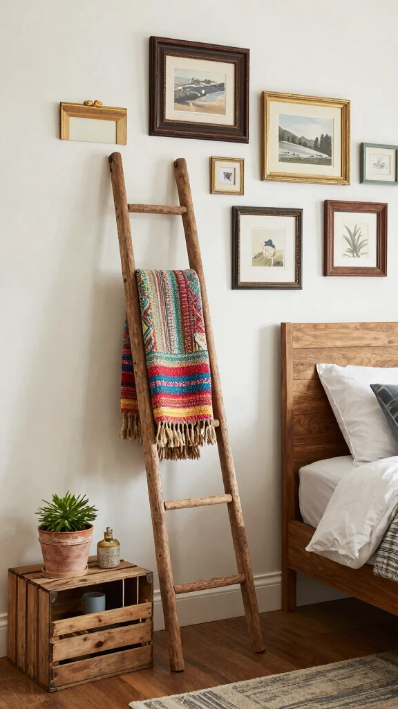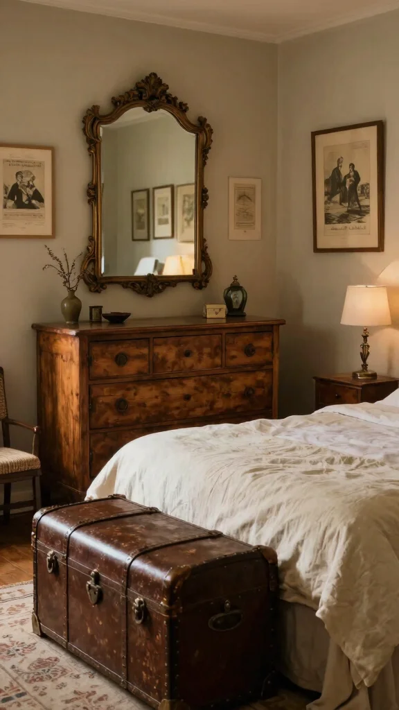 To keep the decor from feeling overcrowded, incorporate a few carefully selected vintage items that truly resonate with your style. An old suitcase can serve as both decor and storage for extra blankets or pillows, enhancing the room’s charm.