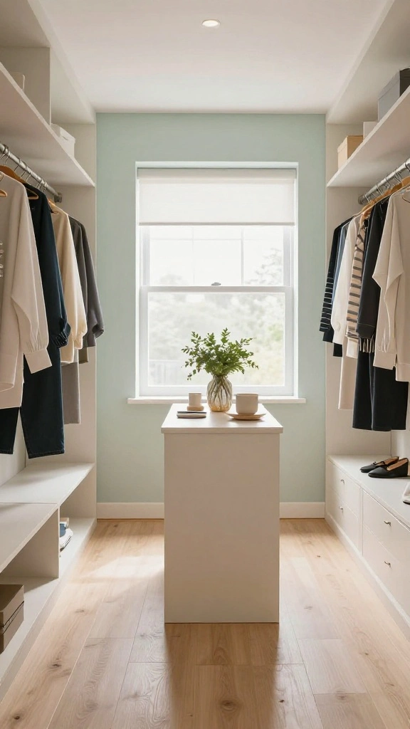 To enhance this concept, consider adding decorative baskets for storage while keeping items organized. A small folding island in the center can serve as a practical workspace for accessories. This approach aligns with current trends valuing personalization and practicality in design.