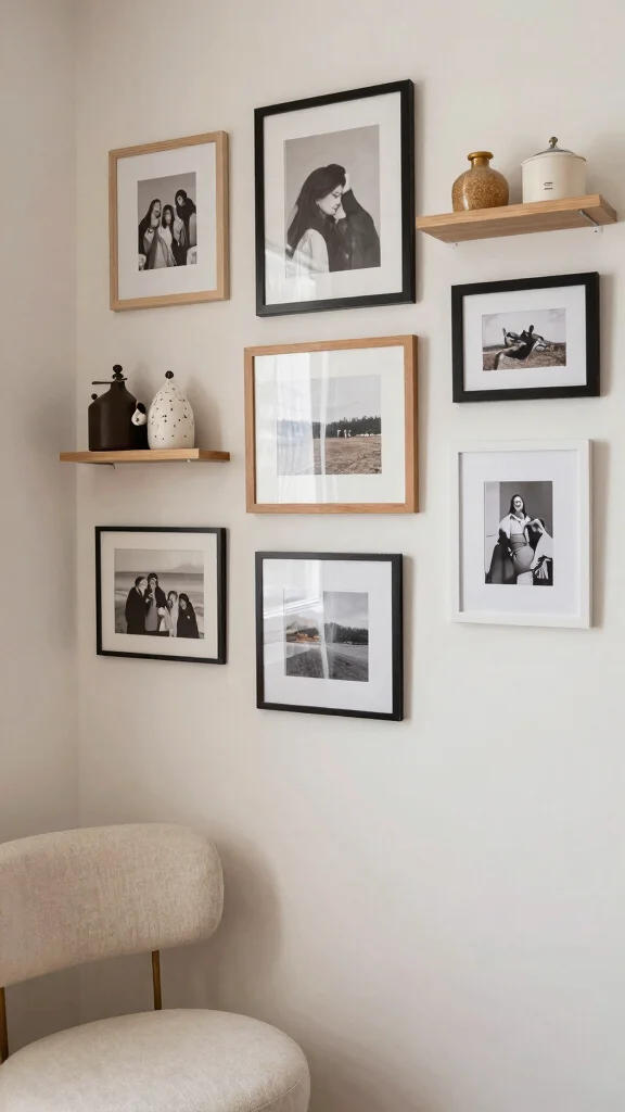 For a cohesive look, consider using a consistent frame style or color. This approach marries artistic expression with functional organization, creating a space that feels uniquely yours.