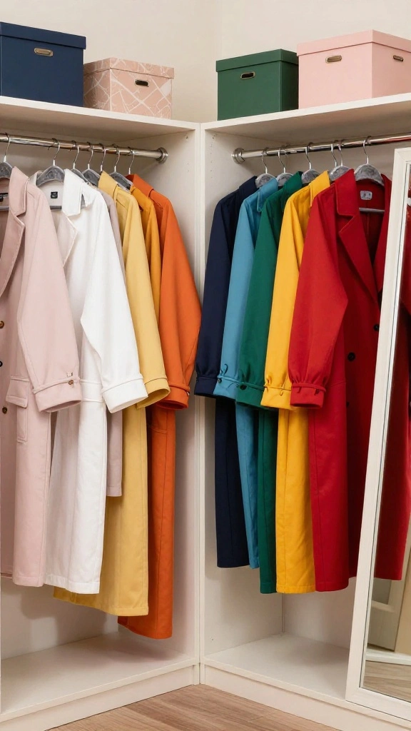 To implement this system effectively, start by selecting a specific order — whether light to dark or the opposite. Consider using color swatches to help identify outfits quickly. Keeping seasonal items in their own section will also streamline your choices, allowing for easier access to what you need.