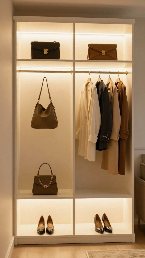 Proper lighting can transform your closet space. Consider adding soft lighting fixtures to brighten dark corners or install LED strips under shelves for visibility. A well-lit closet not only makes it easier to see your clothing but also adds a warm aesthetic to your dressing area.
