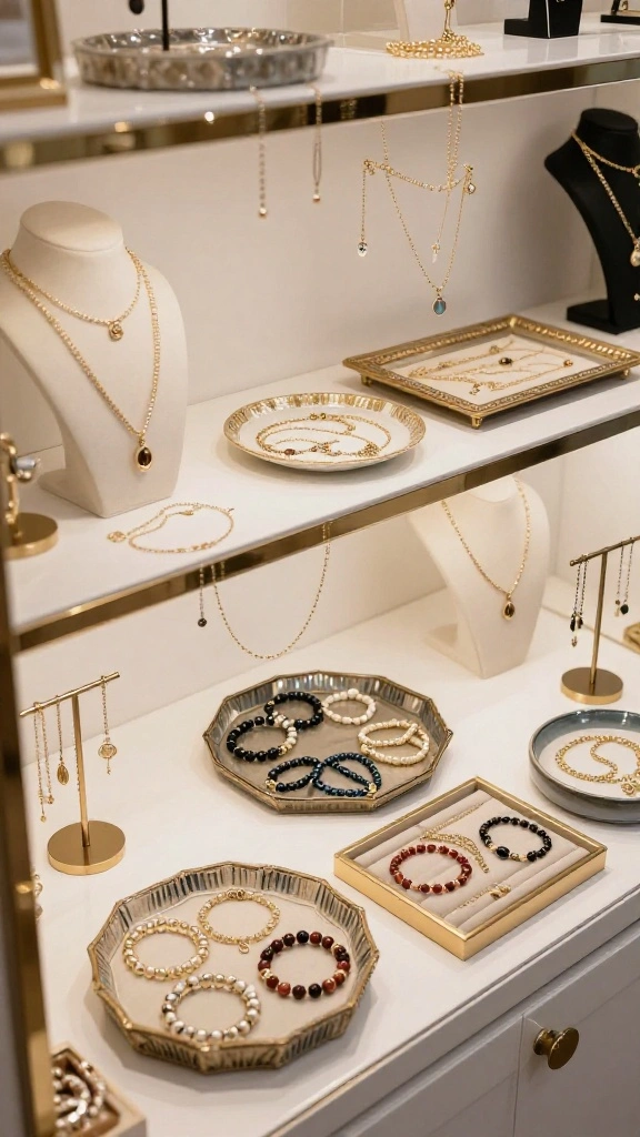 When displaying your jewelry, think about mixing materials and colors to create a vibrant look that reflects your unique style. Regularly rotating your displays can keep the look fresh and engaging.