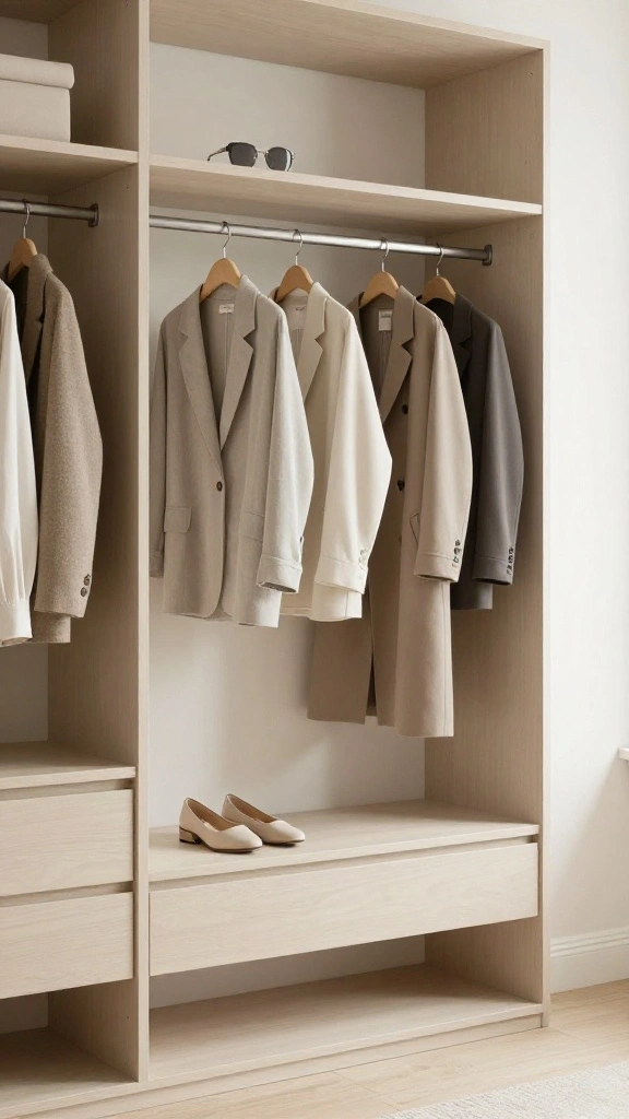 A minimalist closet means utilizing fewer, carefully chosen storage solutions that emphasize simplicity and function. This can lead to a calming environment where you can easily find what you need.