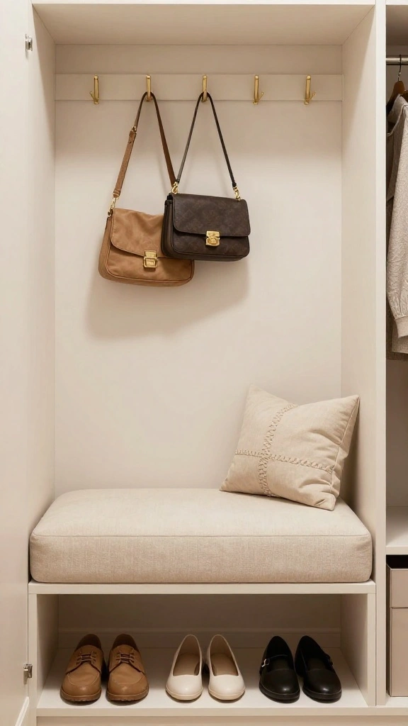 In compact spaces, every piece of furniture should serve multiple functions. Incorporating a bench with storage or an ottoman that opens up can greatly enhance your dressing room experience. This dual-purpose furniture provides a comfortable spot to sit while you dress and offers hidden storage for shoes or accessories that would otherwise clutter your space. Stylish hooks above the bench can also serve as a fashionable solution for hanging bags or jackets.