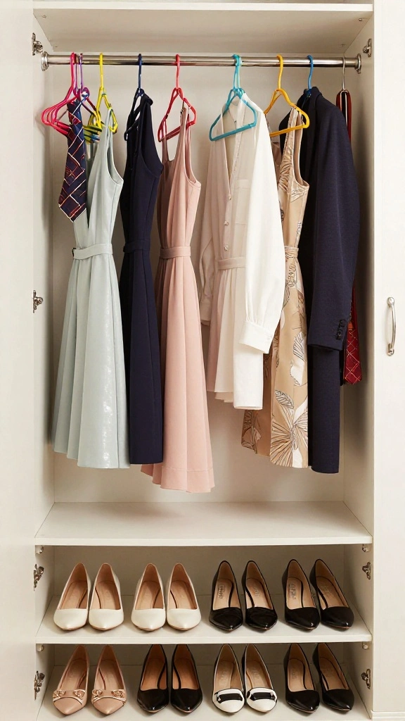 This method not only maximizes your closet space but also promotes a neat and orderly dressing area.