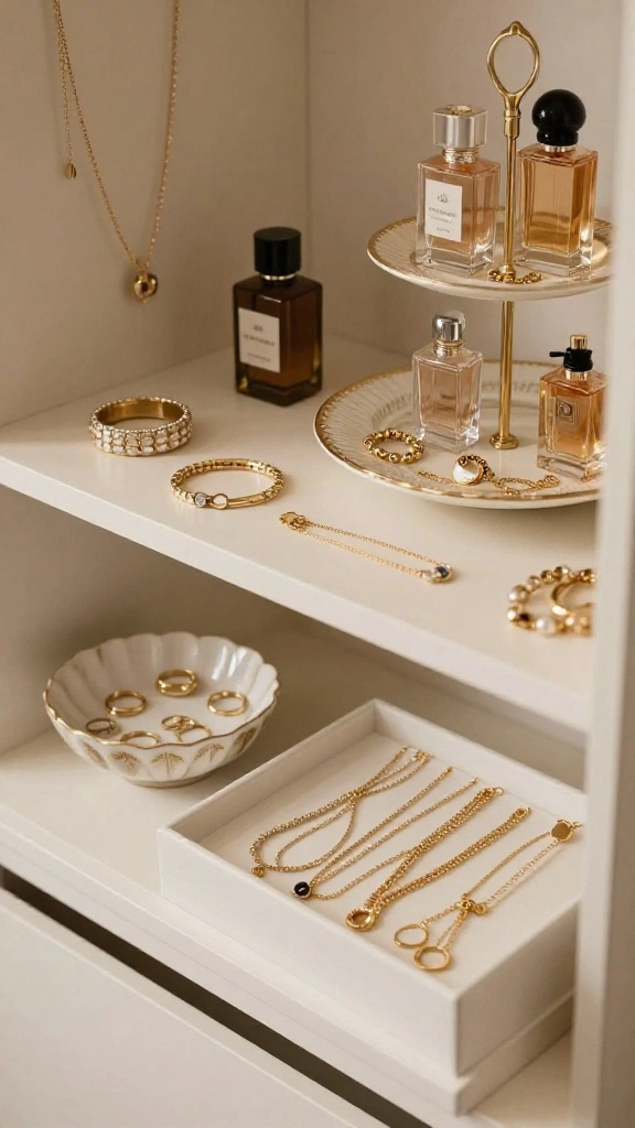 A creative jewelry display not only organizes your accessories but also enhances the overall charm of your dressing room closet.