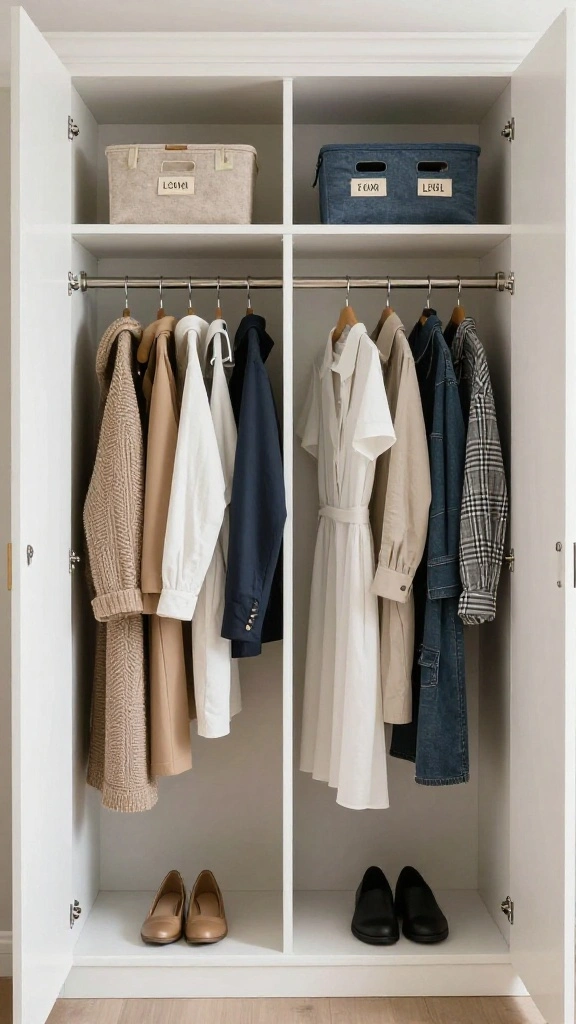 Incorporate various storage solutions to maximize efficiency. Use bins for seasonal items or drawer dividers for accessories. Think about vertical storage options like tall shelves or hanging organizers. These ideas can help keep smaller items neatly arranged and easily accessible.