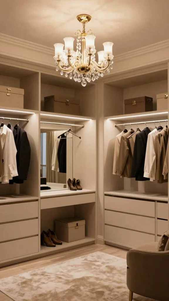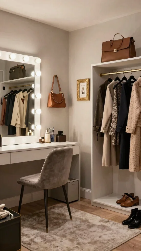 A dressing room with thoughtful lighting enhances both style and functionality, making your daily preparation a pleasure.