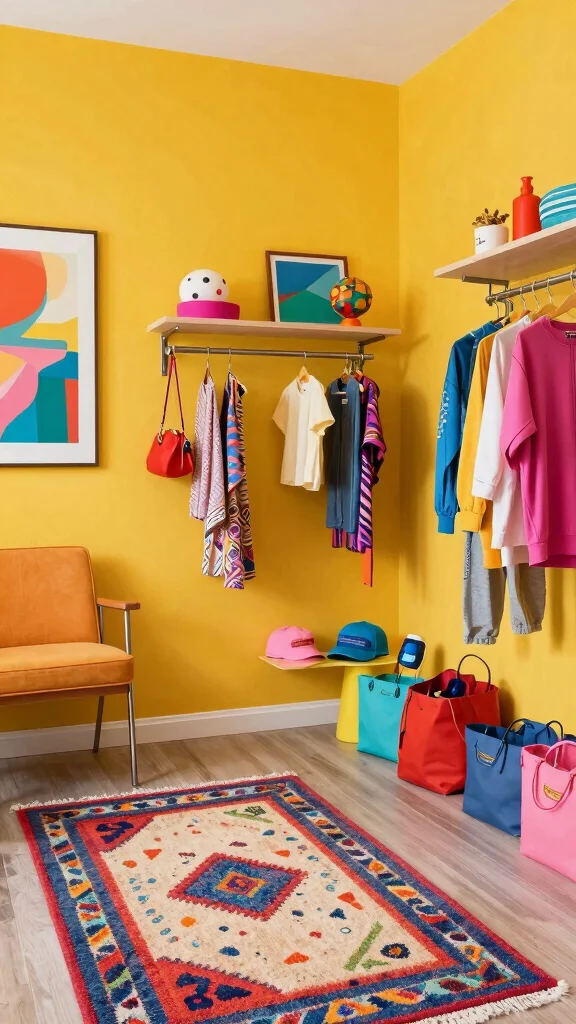 Consider using bright rugs or curtains to make a statement, and choose colorful storage bins to keep things organized. Incorporating vibrant artwork also adds to the cheerful vibe.