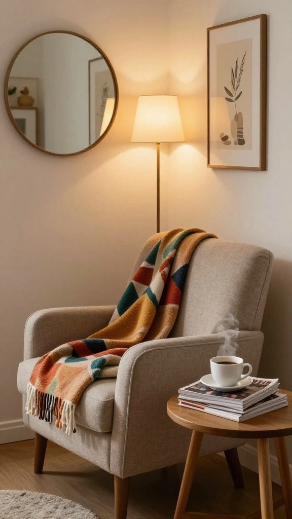 To design this nook, use plush cushions and throw blankets for added comfort. Choose a calming color scheme that promotes relaxation, and hang art or mirrors to create visual interest.