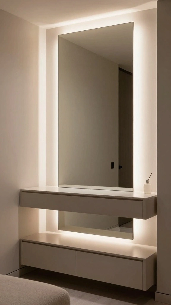 Lighting is everything. Start with warm white task lighting around the vanity—use lighting for mirrors that is dimmable and around 3000K-3500K for flattering color. These dressing room mirror ideas include adding backlit or halo lighting behind the mirror to reduce shadows, plus a secondary ambient source to create depth. Use a mix of ambient, task, and accent lighting to emphasize dressing room design goals. Consider a mirror with built-in LEDs or sconces on both sides for even illumination. Position mirrors to reflect natural light when possible, a simple home decor inspiration trick.