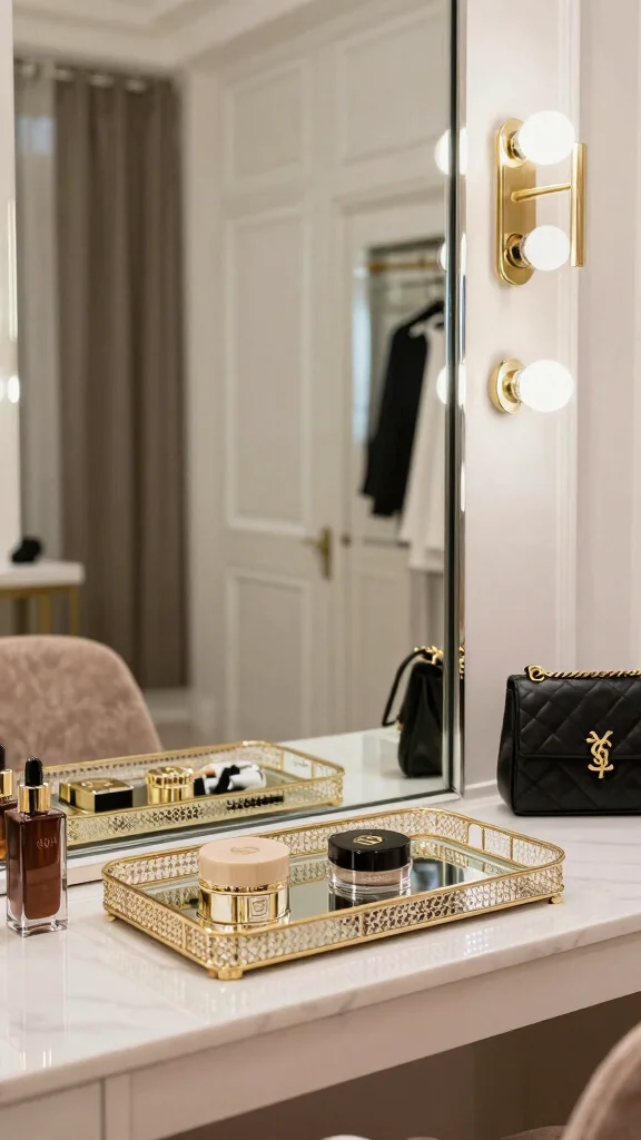 Mirrored accents can create a layered, textured look alongside your main mirror. Incorporate mirrored trays, decorative items, or furniture with reflective elements to enhance depth and sophistication in your dressing room. This approach makes each reflective surface work harmoniously to elevate your decor.
